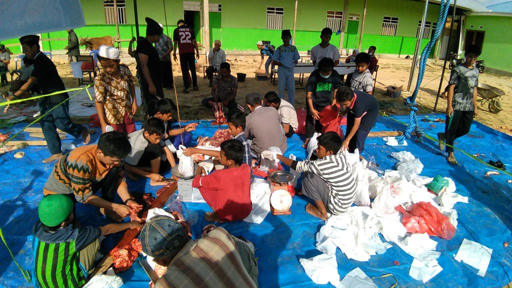 Alhamdulillah telah terlaksana Acara Qurban bersama Pondok Pesantren Al-Ihsan Baron 4 Kendari dengan tema “Bersama berbagi menebar kebaikan “.Diantara hewan yang di qurbankan ialah Sapi 🐄 yang berjumlah 10 ekor & kambing 🐐 3 ekor,Alhamdulillah tahun ini mengalami kemajuan 💯 % dari tahun kemarin kami berdo’a kepada Allah subhanahuwata’ala agar senantiasa meridhoi setiap ikhtiar kita dalam menggapai ridhonya.dan untuk seluruh Ahli keluarga yang telah berkenan Berqurban bersama kami di Pondok Pesantren Al-Ihsan Baron 4 Kendari, Semoga Allah subhanahuwata’ala memberkahi harta dan keluarganya dengan limpahan Rezeki yang lebih luas lagi sehingga bisa bersama kami kembali di tahun-tahun berikutnya dalam berbagai hal positif yang bernilai ibadah disisi Allah subhanahuwata’ala.Kepada panitia yang bertugas dan seluruh komponen yang telah berkontribusi menyukseskan Acara Qurban Bersam Pondok Pesantren Al-Ihsan Baron 4 Kendari tahun ini,Atas nama majelis Kyai dan seluruh staf Pondok Pesantren Al-Ihsan Baron 4 Kendari mengucapkan banyak terima kasih, semoga Allah membalas dengan yang lebih baik di sisinya.Aamiin.